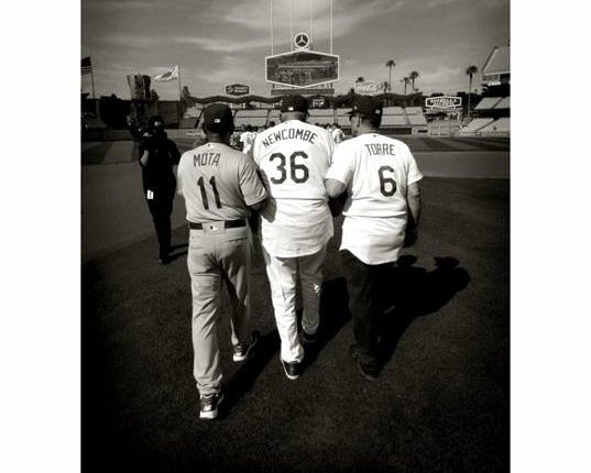 Don Newcombe was simply referred to around the ballpark as “Newk“. His accomplishments in baseball, during a time of racial integration, has always been underrated and underappreciated by most. He earned Rookie of the Year, National League MVP and first ever Cy Young Award. In the memorable playoff game between the Dodgers and the Giants at the end of the 1951 season, Newk was relieved by Ralph Branca in the bottom of the ninth inning. Branca then surrendered the walk-off home run to Bobby Thomson to give the Giants the pennant. In the mid seventies I formed a friendship with this gentleman. Newk was named as Director of Community Relations by the Dodgers. We quickly learned that we grew up in the Garden State of New Jersey just a few miles apart from each other. He was a man of style and grace. Always one to have time to sit and talk, baseball or life itself. Two years ago I was a guest on the field prior to the Dodgers’ 2017 Old Timers Game. I’m pleased I had the opportunity to share a bit of time with him on the bench. The coordinator for the ball club called for a team photo of the former players to be taken at second base. Newk was determined to be included and declined the use of a wheelchair. He was going to walk out there on his own. Soon after crossing the foul line it was obvious he was not going to get his ninety one year body there. Quickly both Manny Mota and former Dodger manager Joe Torre, stepped in to lend an arm. I hit the shutter button.