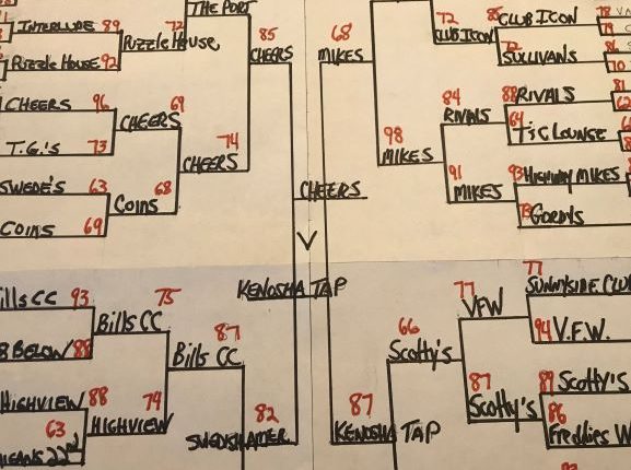 Cheers (6) def Swedish American (7) 85-82 in the first game of the day. This small neighborhood bar on Kenosha’s northeast side has been amazingly consistent in this tournament. They have defeated Fec’s, TG’s, Coins, The Port and Swedish American en route to the finals. They have won close games and they have won blowouts. They have won as a favorite and won as a dog. It has been a “by any means necessary” for this classic KTown watering hole. Cheers to Cheers…no way I thought you’d be here..congrats.
