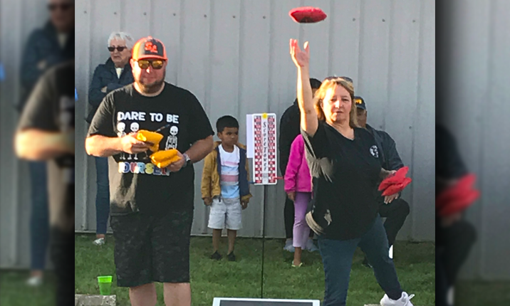 And there is a new wrinkle this year. “In the middle of the league I stop everyone and bring boards out in the middle for everyone to see. Then whoever is shooting that night on each team gets a ticket for a chance to win gift cards from the Sponsor of the Week. Last week was Twisted Cuisine. They donated (3) $15 gift cards. If your ticket gets pulled you have 1 bag to throw it in the hole and win the gift card that night. If you miss, we keep going. It took 22 people to win all 3 gift cards. It’s all eyes on you when you get called. Pretty exciting and nerve racking at the same time”.